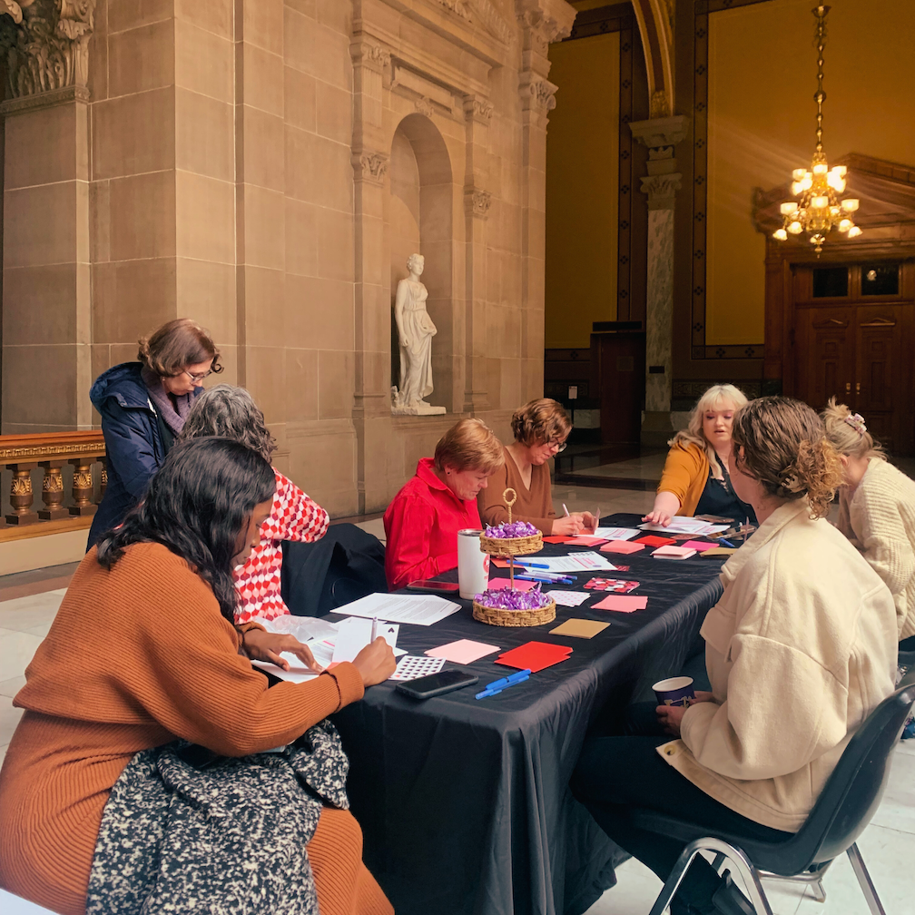 On Galentine’s Day, we gathered at the Statehouse and wrote our legislators.